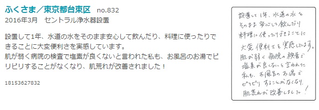 ゆい&あいさま/東京都練馬区 no.833 2017年2 月 セントラル浄水器設置