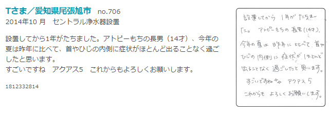 Tさま/愛知県名古屋市 no.708 2013年5月 セントラル浄水器設置