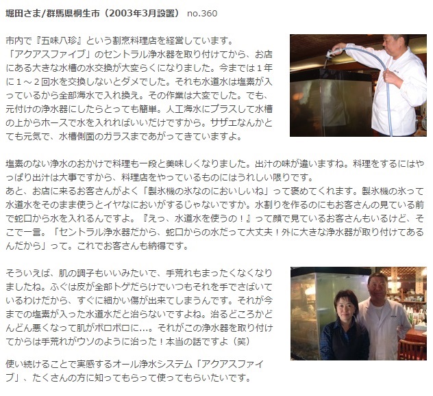 S.Kさまからのうれしいお声にスタッフ一同大変感謝しております。 ありがとうございました。お水以外にもたくさんのものにこだわっているようですね。アクアスファイブの浄水がS.Kさまのお役に立てることをこ心から願っております。これからも、快適な毎日が過ごしていただけるよう、全力でサポートしてまいります。末永いお付き合い、よろしくお願いしますm(__)m
