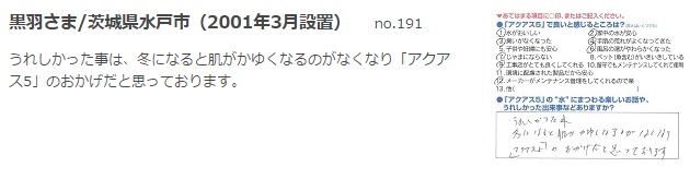 今迄、他のメーカーの浄水器を使用していたのですが、3か月1回、自分で掃除をしていたので、重くて大変でしたが、セントラル浄水器「アクアスファイブ」は、この作業がなくて楽になった事。